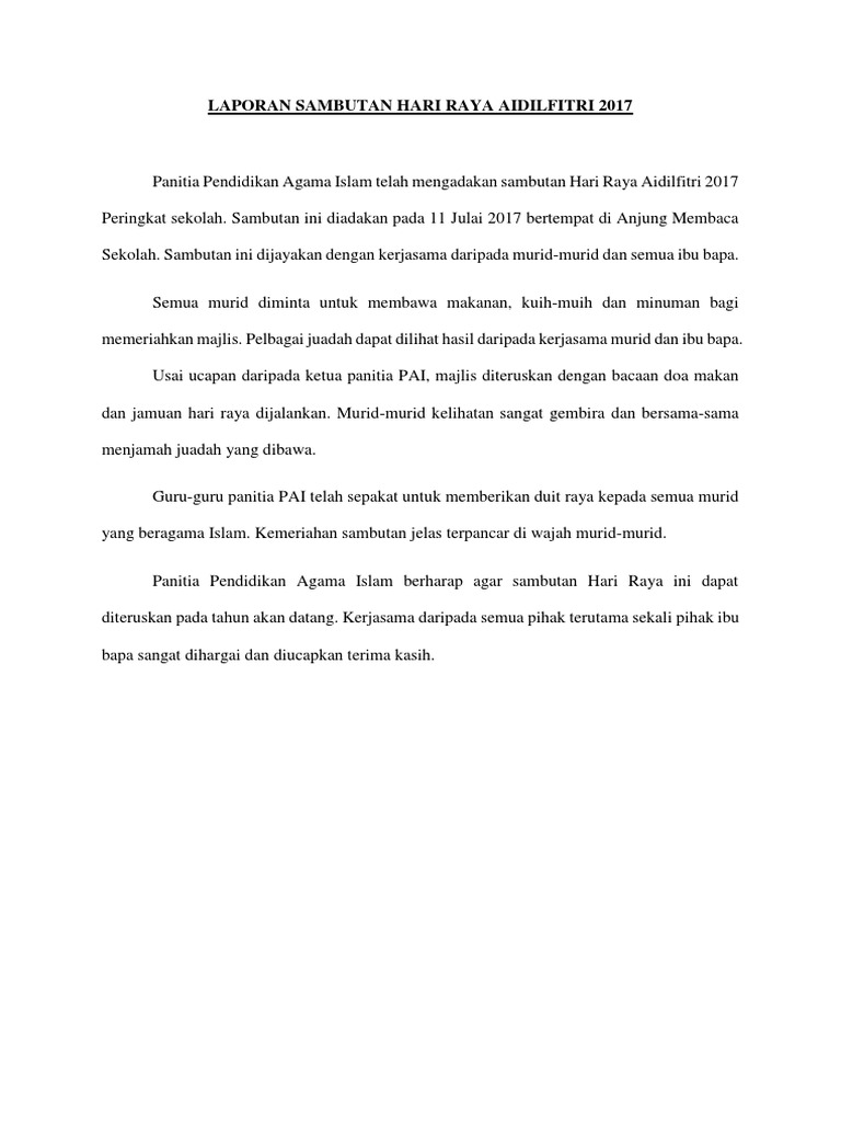 Laporan Sambutan Hari Raya Aidilfitri 2017 Pdf